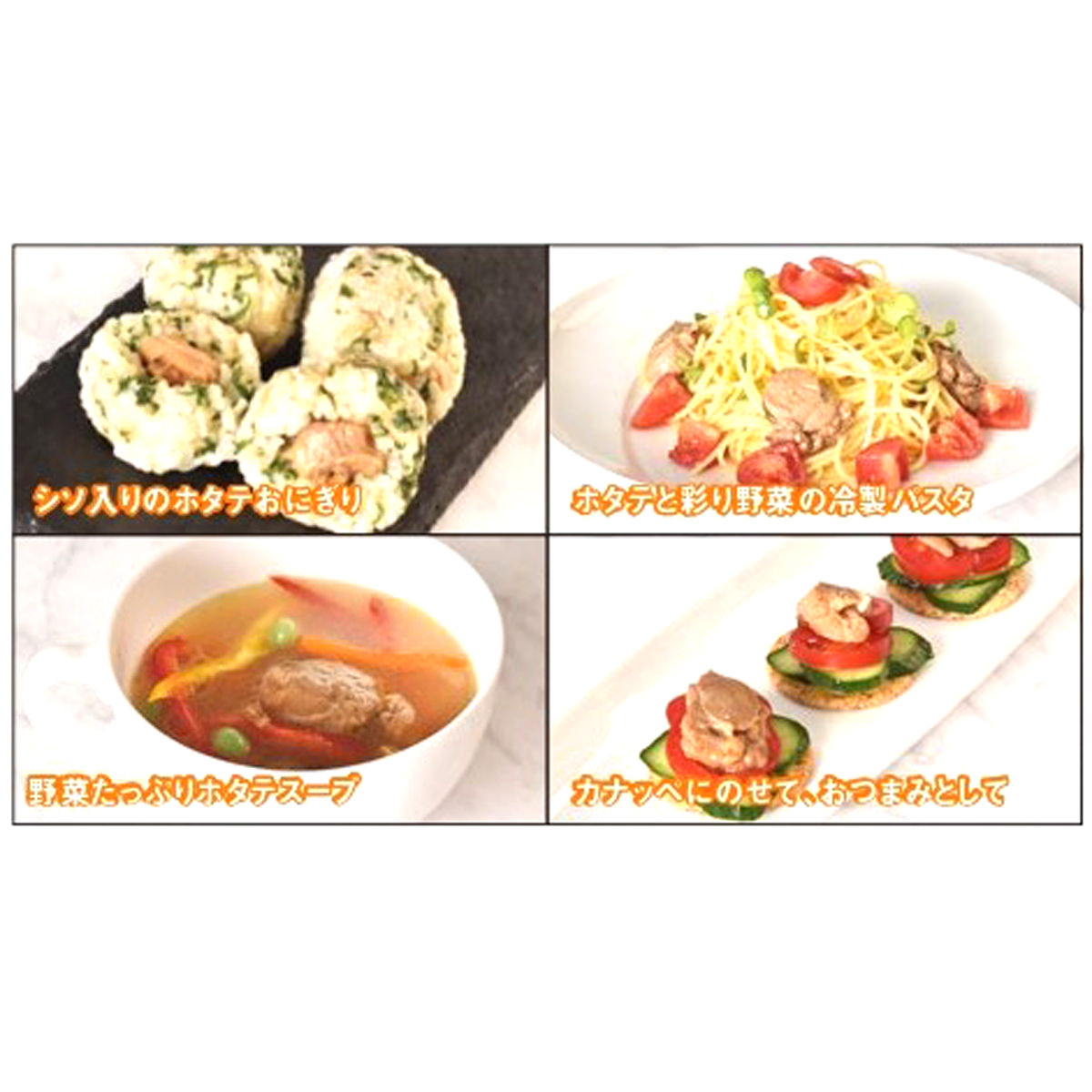| 原材料/素材/材質 | 帆立(北海道産)、植物油脂、しょうゆ、清酒、砂糖、バター、ほたてエキスパウダー/増粘剤(加工でんぷん)、香料、調味料(アミノ酸等)、酸味料、カロテン色素、(一部に小麦・乳成分・大豆を含む) |