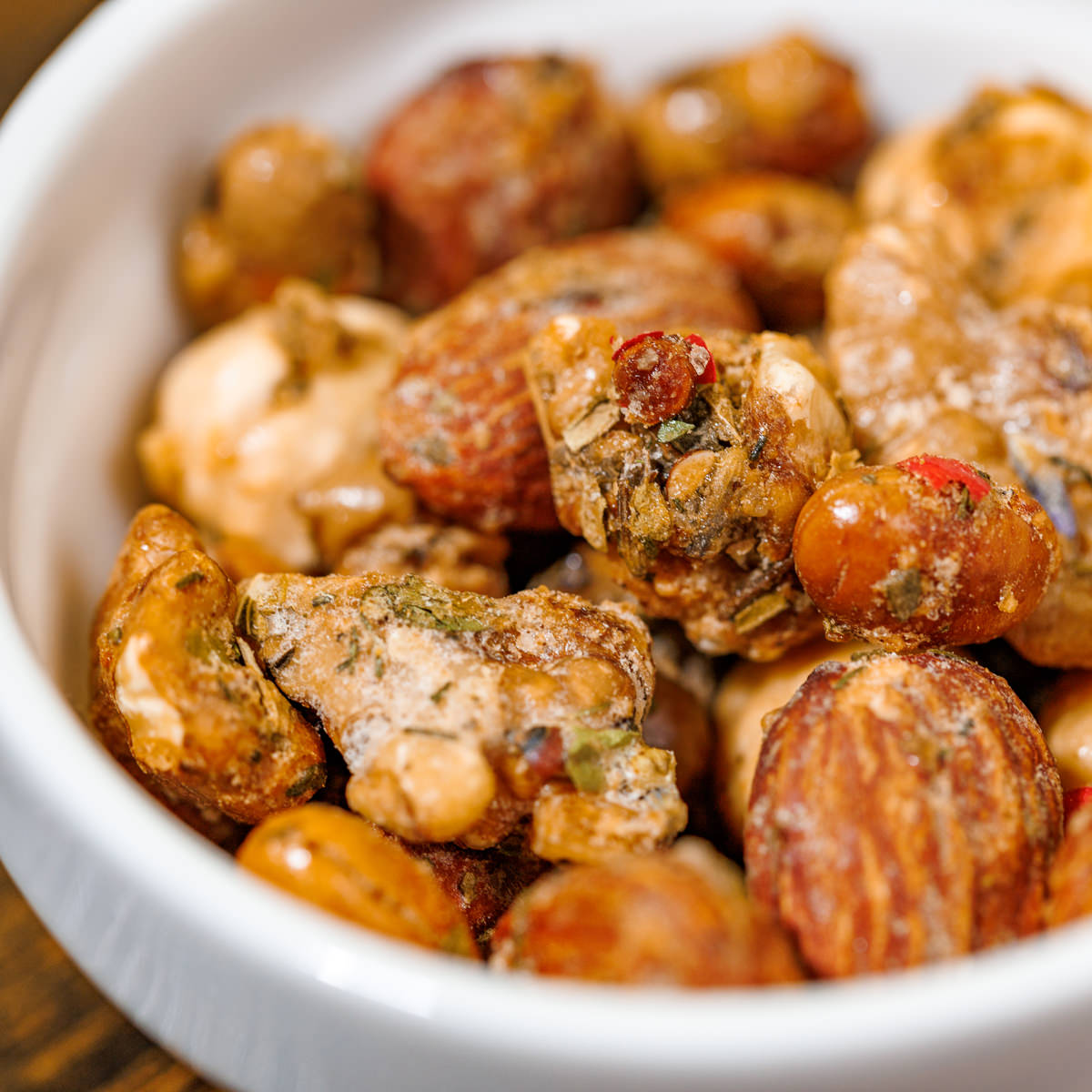 | 原材料/素材/材質 | アーモンド(アメリカ産)、くるみ、大豆(北海道産)、へーゼルナッツ、鶏卵、甜菜糖(北海道製造)、食塩、混合スパイス(地中海ハーブスパイスミックス(内製))、ピンクペッパー、ガーリック、黒胡椒、ラベンダー |