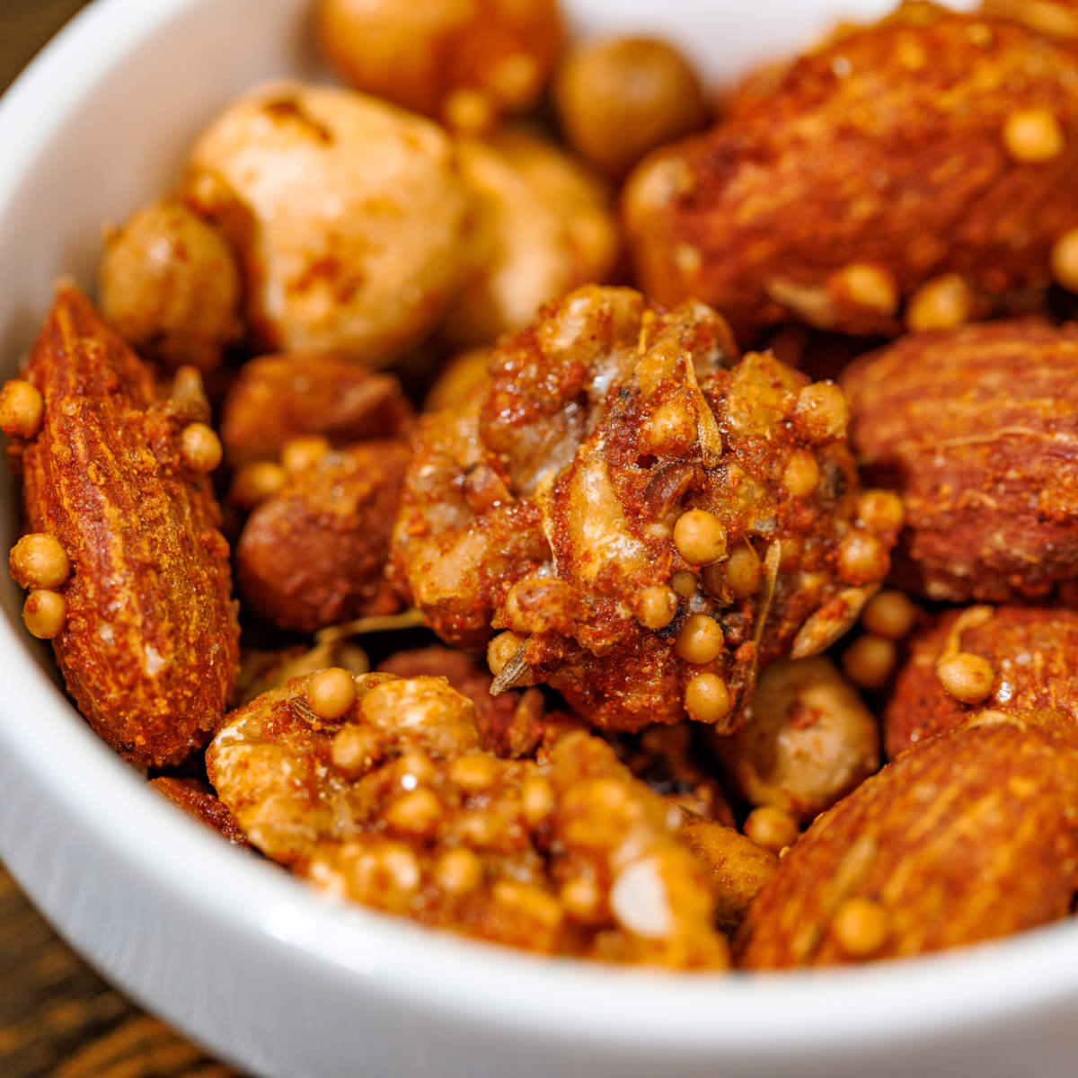 | 原材料/素材/材質 | アーモンド(アメリカ産)、くるみ、大豆(北海道産)、へーゼルナッツ、鶏卵、マスタードシード、混合スパイス(メキシカンチリミックス(内製))、甜菜糖(北海道製造)、黒糖、食塩、蜂蜜(北海道産)、クミン、黒胡椒、タイム |