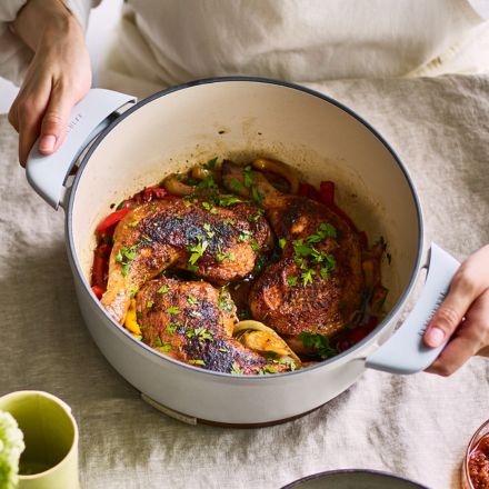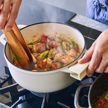 オーブンポット2で作った、あつあつのおいしい料理を鍋ごと食卓に