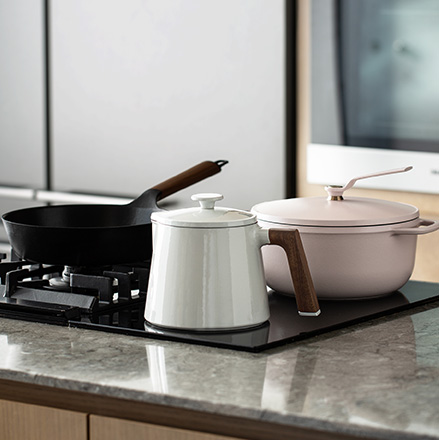 鋳物ホーローとウッドが組み合わさったスタイリッシュなデザインは、