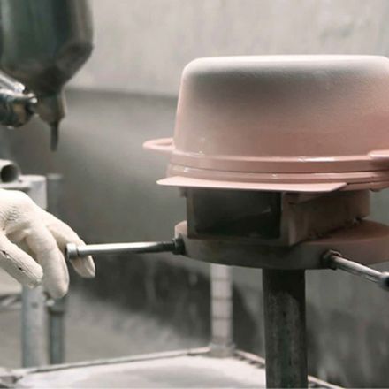 お預かりしたバーミキュラ製品を、もう一度溶かし直すことで、
