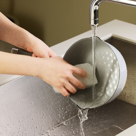 お手入れは、中性洗剤とスポンジで丸洗いするだけ。