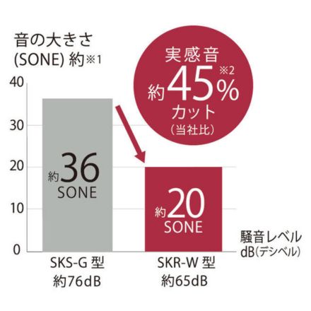 ※2 SKR-W型の実感音(約20SONE)と当社従来品SKS-G型の実感音