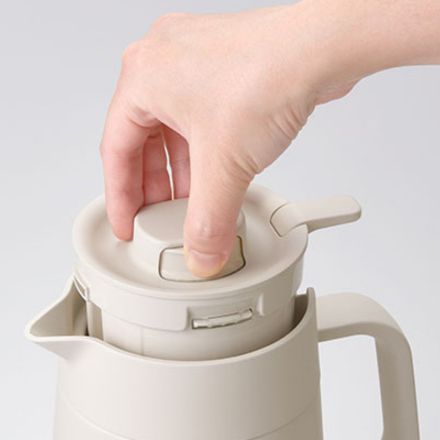 とっ手を持ちながら押すことで、スムーズに注いでいただけます。