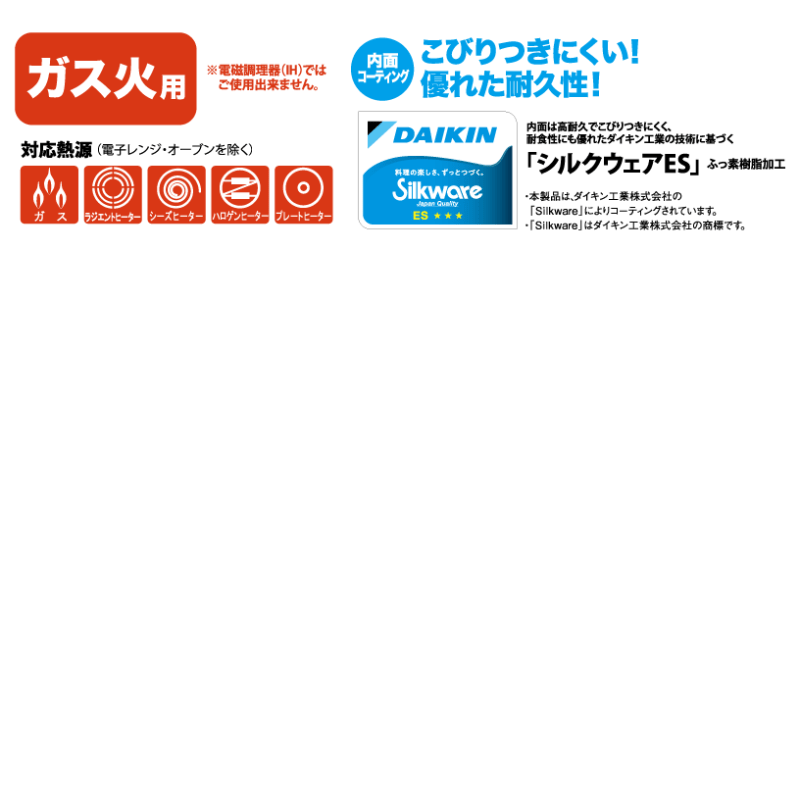 | 注意事項/留意事項 | ガス火専用 |