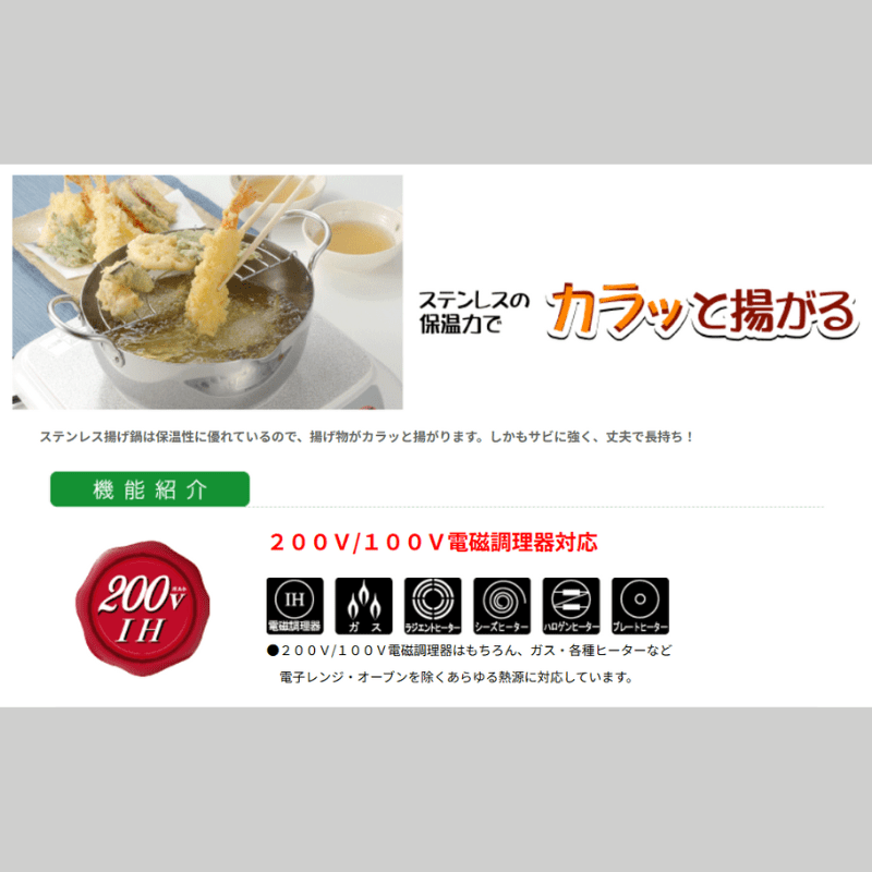 | 原材料/素材/材質 | 本体・ハンドル:ステンレス鋼、揚げアミ:鉄 |