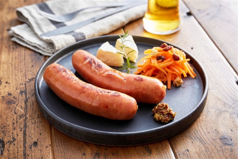 ジューシーな肉の味と醤油が香ばしい、珍しい和風のオールポークフランクフルトです。