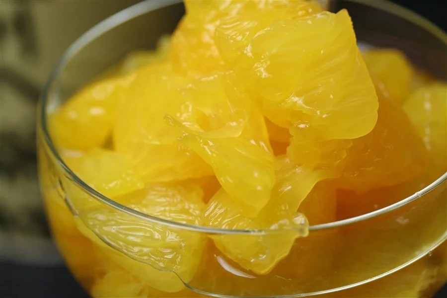 身割れ果肉(約30%)は割れた断面にシロップがからみ、甘みがひきたつ味わいです。