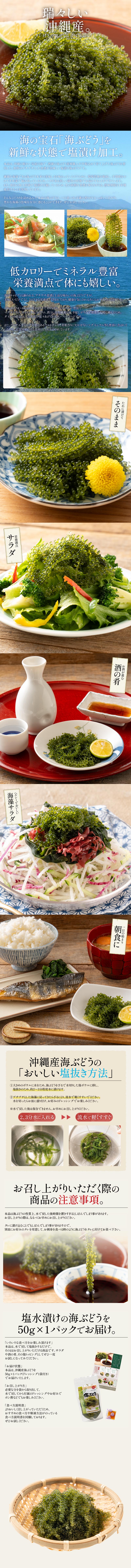 | 原材料/素材/材質 | 沖縄県産海ぶどう、食塩 |
