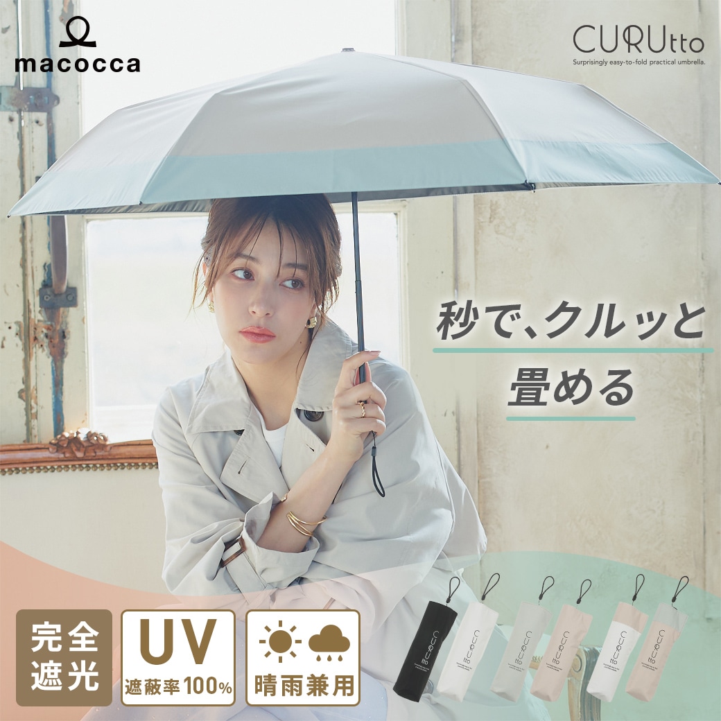 くるっと 畳みやすい傘 CURUtto クルット 手開き 形状記憶傘 晴雨兼用 完全遮光 日傘 折りたたみ傘 無地/切替 遮光率100% 遮蔽率100% 撥水 親骨50cm 紫外線カット UVカット