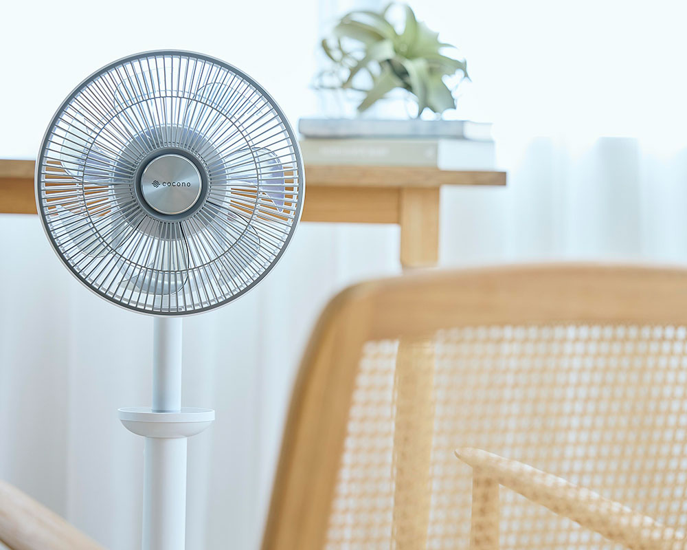 紡ぎ出す空気も、その佇まいも心地いい。「airy fan」は、毎日の暮らしにそっと寄り添う、新しい家電のカタチです。
