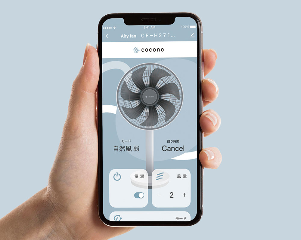 リモコンでは3段階の風量調整ができます。また、スマホアプリなら家の中のどこからでも操作が可能。さらに10段階の風量調整ができ、自然でやわらかい微風からパワフルな風まで自在に風をコントロールできます。