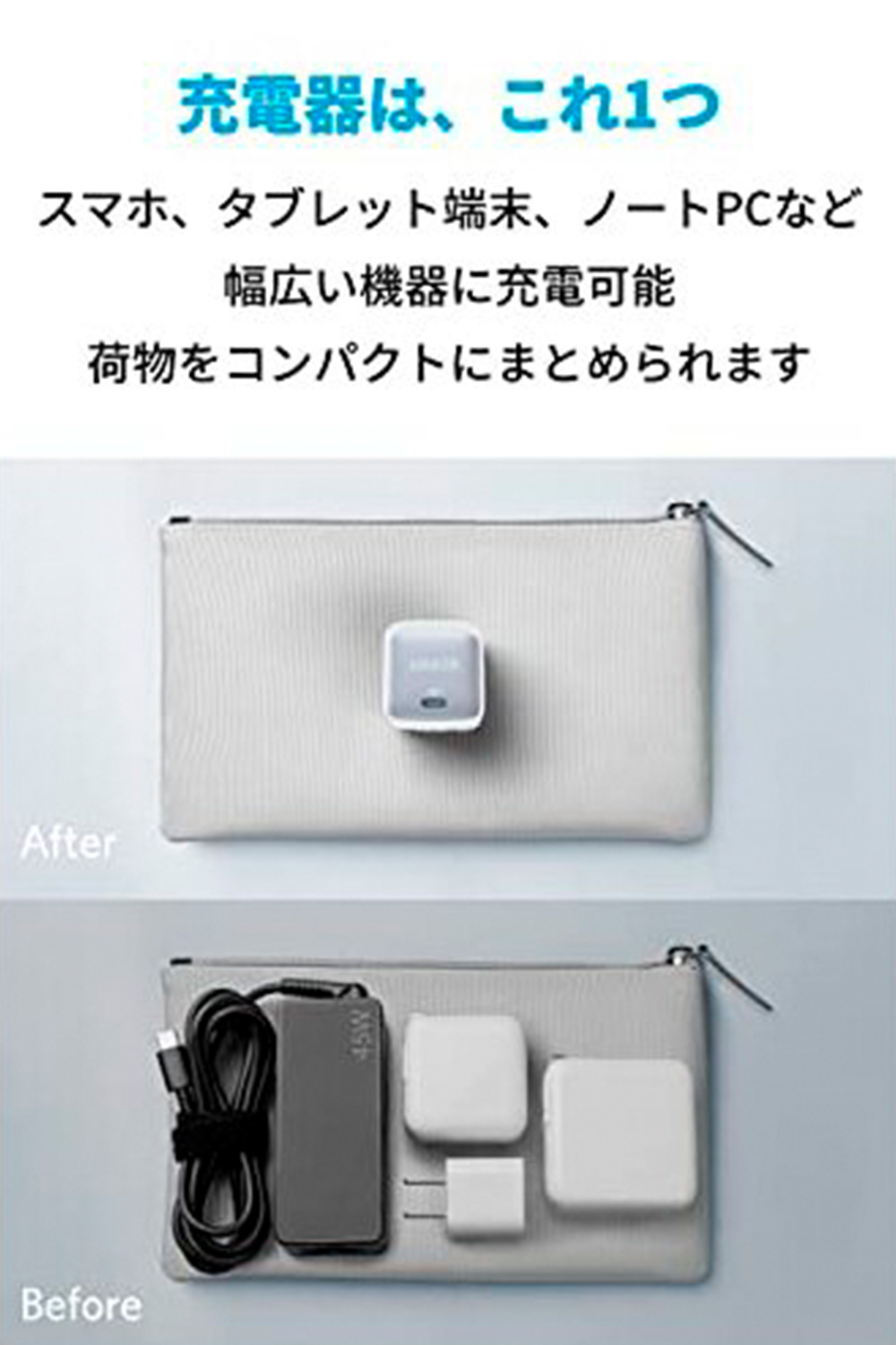 利用機器毎に異なる充電器を持ち運ぶ必要はありません。