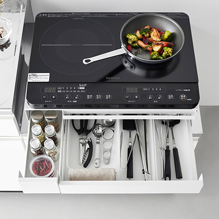 IHクッキングヒーターラック 引き出し&スライドテーブル