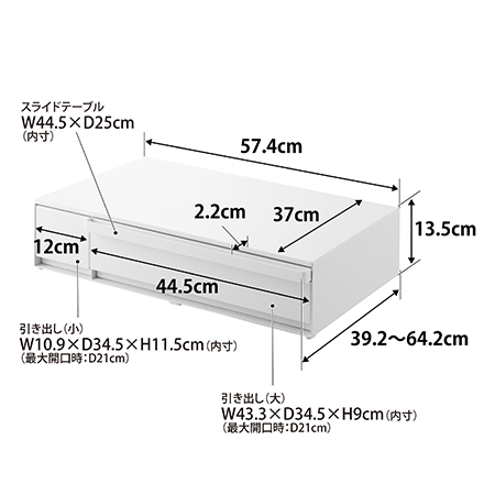 | サイズ/寸法 | 約幅57.4×奥行39.2~64.2×高さ13.5cm |