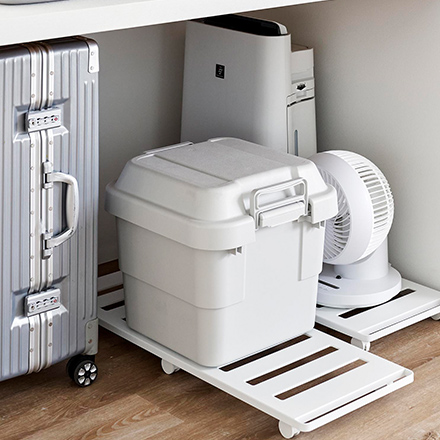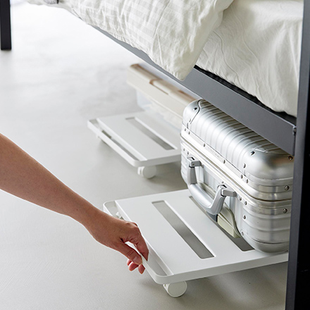 押し入れやベッド下の奥まで使えて取り出しラクな収納 ハンドル付きロング台車