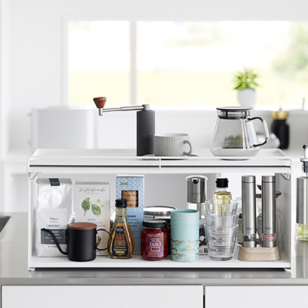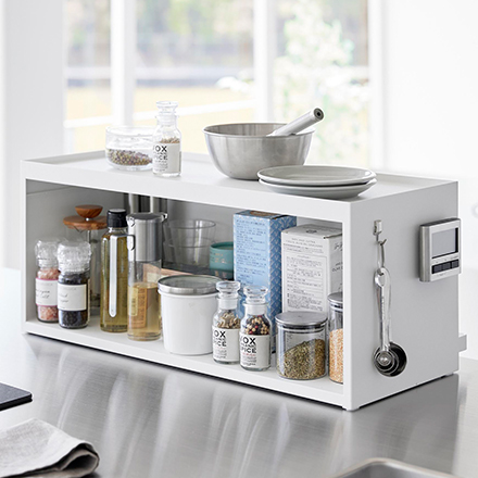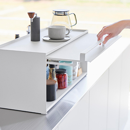 tower タワー 前が開くキッチンカウンター上収納ラック D24 ホワイト 1454