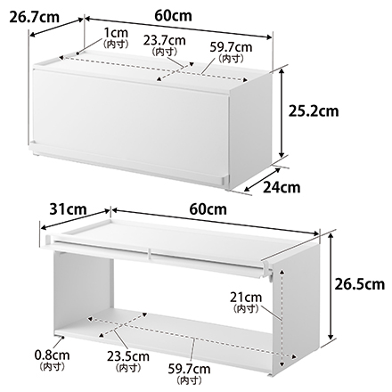 | サイズ/寸法 | 扉を閉じた状態: 幅60 × 奥行26.7 × 高さ25.2cm 扉を開けた状態: 幅60 × 奥行31 × 高さ26.5cm |