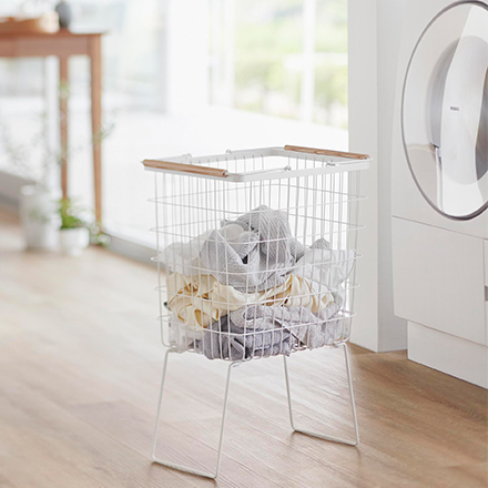 洗濯物がラクに干せる脚付きランドリーバスケット