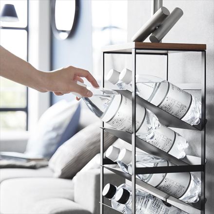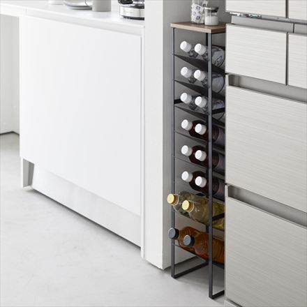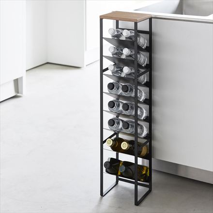 スリムに収納できる天板付きの大容量縦型ボトルストッカー。