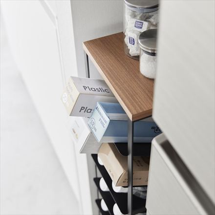 ボトル以外にも、ラップやホイルなどのキッチンツールの収納にも便利。