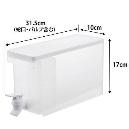 | 原材料/素材/材質 | 容器:メタクリルスチレン 蓋・仕切り板・蛇口・キャップ:ポリプロピレン パッキン・バルブ:シリコーン レバー:ABS樹脂 蛇口バネ:ステンレス鋼 |