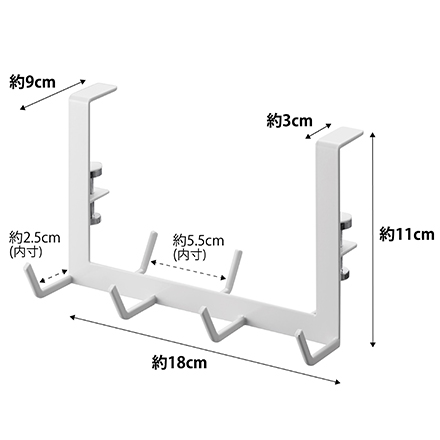 | サイズ/寸法 | 幅18×奥行9×高さ11cm 内寸:フック部:D2.5cm フック同士の間隔:W5.5cm |