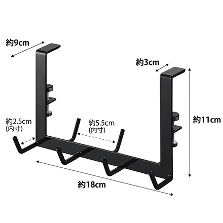 | サイズ/寸法 | 幅18×奥行9×高さ11cm 内寸:フック部:D2.5cm フック同士の間隔:W5.5cm |