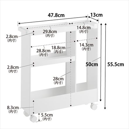 幅13cmのスリムなワゴンです。