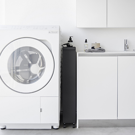 ・キッチンやランドリールームなど限られたスペースにも省スペースに収納。
