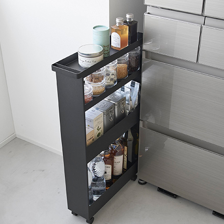 幅13cmの隙間で使えるハンドル付きのスリムワゴン4段