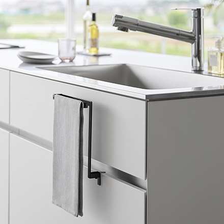高い位置に設置できるので、引き出しの開閉時にタオルを巻き込みません。