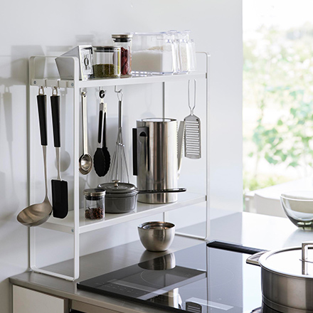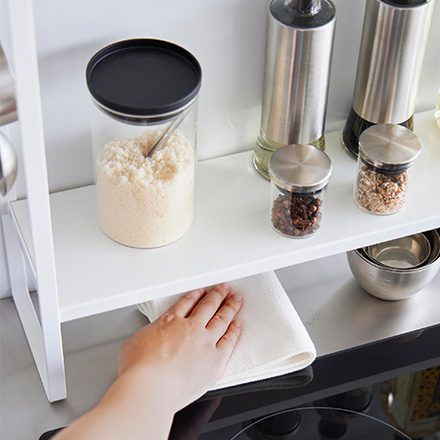 コンロ横の僅かな隙間に設置 ラック下のお手入れが簡単な 2段の大容量収納ラック