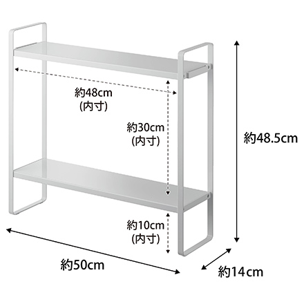 | その他詳細 1 | 【内寸サイズ】 上段棚:約幅 約48 × 奥行 13.5cm 下段棚:約幅 約48 × 奥行 13.5 × 高さ 30cm 床面から下段棚までの高さ約10cm |