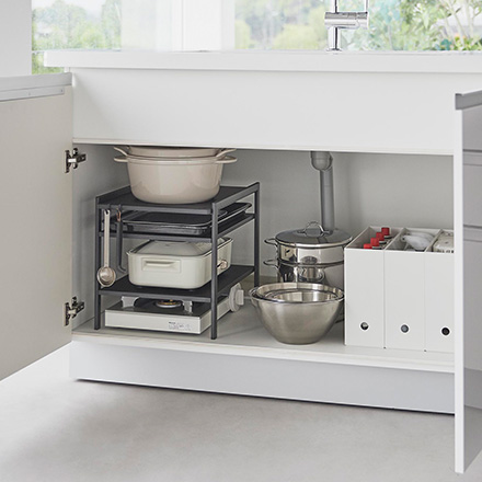 収納に困るホットプレートや鍋などを省スペースに収納できるラック
