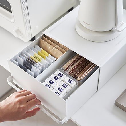 ・引き出しの中にシュガーや紅茶パックなどを一括収納できます。