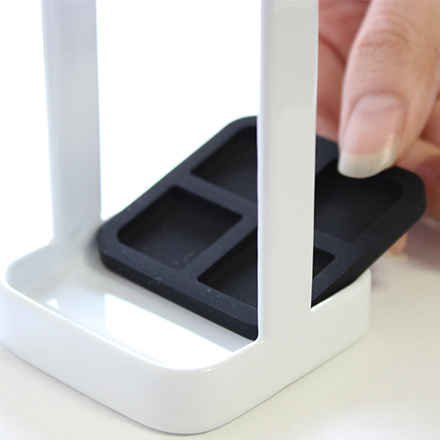 ・シリコーン製の仕切り付きマットで、収納した歯ブラシの横滑りを防ぎます。