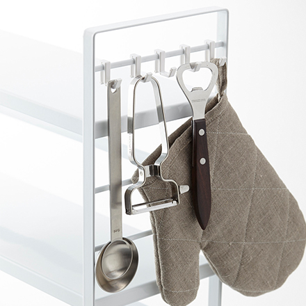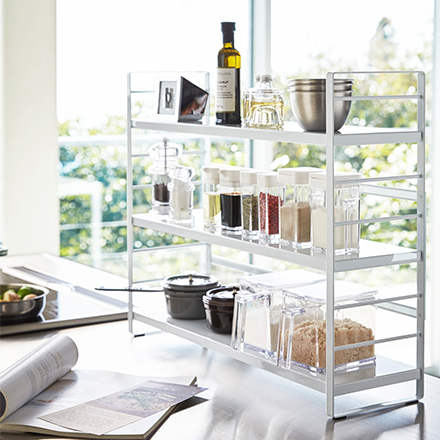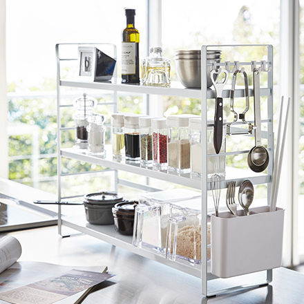 ・3段あるので、調味料・スパイス類・キッチン道具や小物を一括収納できる。