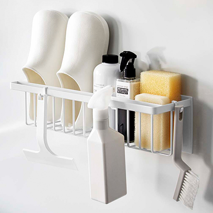 ・付属のフックにはブラシや水切りワイパーなどを掛けてすっきり収納。