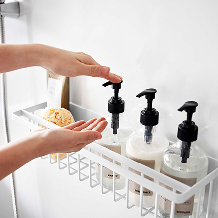 ・幅約44.3cmのワイドなバスケットでバス用品をまとめて収納できます。