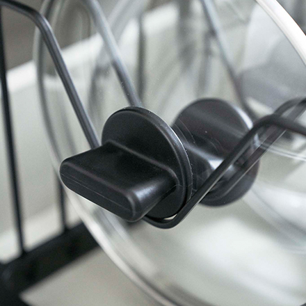 鍋蓋の持ち手を引っ掛けて収納できる