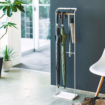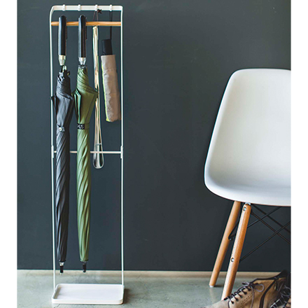 傘が絡まないので乾きが早く、玄関先をキレイに整頓してくれます。付属のフックを使えば、折り畳み傘や靴べらなどの収納場所に困る小物をまとめて収納できます。場所をとらないスリムな設計だから置く場所を選びません。