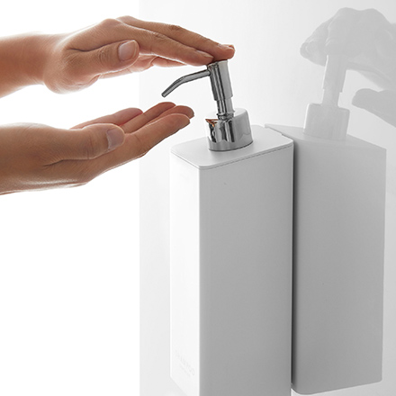 ・壁面に貼り付けたままポンプを押して液体を出すことができます。