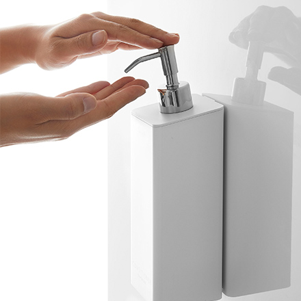・壁面に貼り付けたままポンプを押して液体を出すことができます。