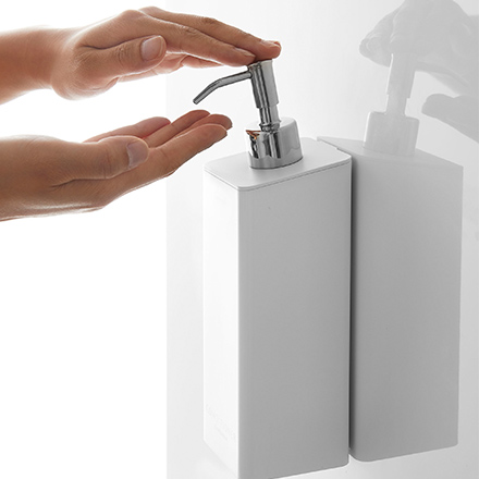 ・壁面に貼り付けたままポンプを押して液体を出すことができます。