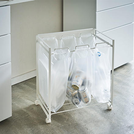 レジ袋を隠して分別できるスタイリッシュな分別ダストワゴン
