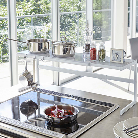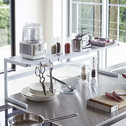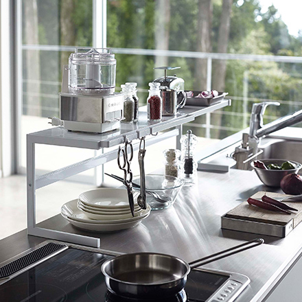 ・スパイスや調理器具などの収納、野菜やお鍋の一時置きなどに使えます。