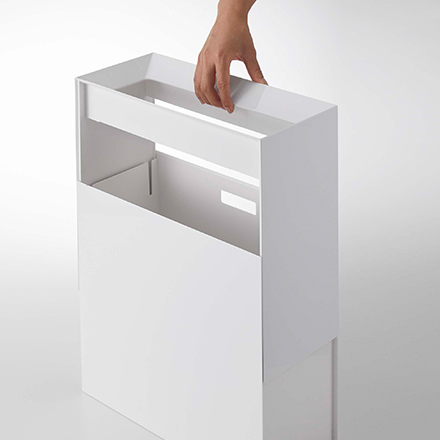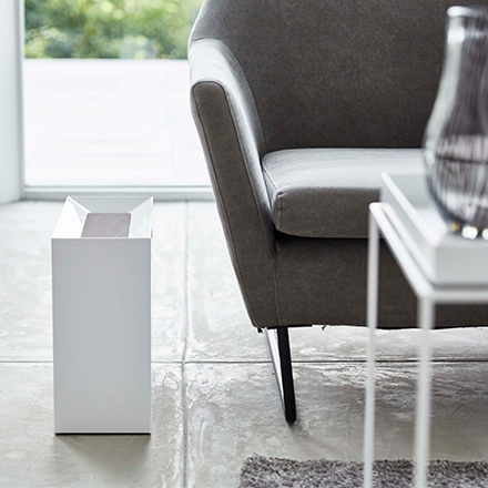 ゴミ袋をセットしても外から見えない、シンプルでスタイリッシュなデザインのゴミ箱