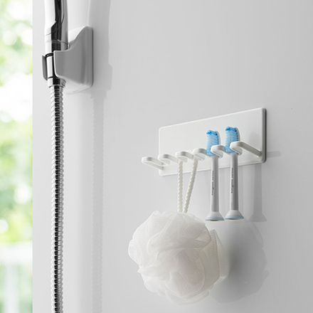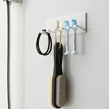 - 電動歯ブラシの替えや、バス小物も引っ掛けて収納できます。